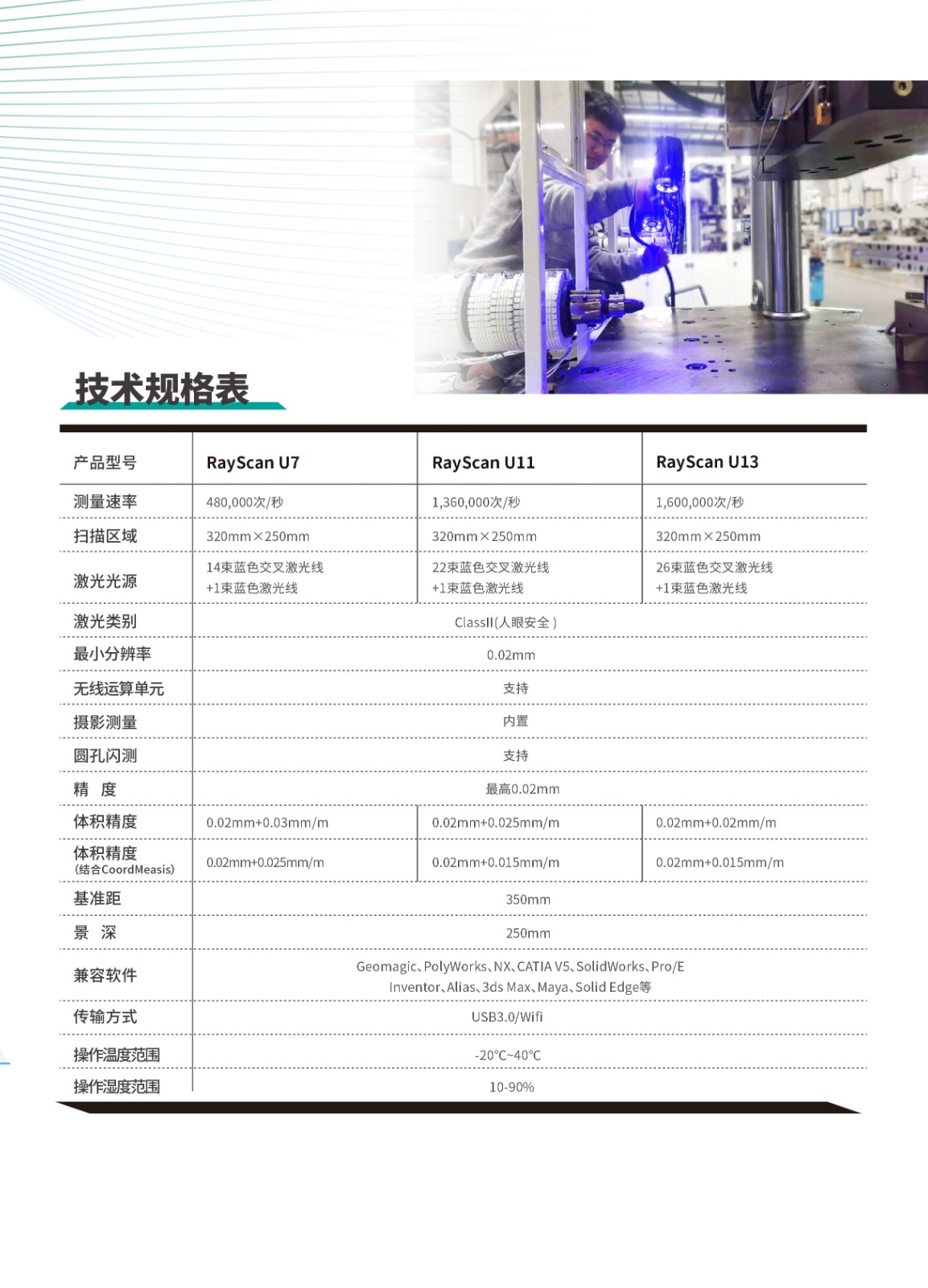 測量速率:RayScanU7的測量速率為48萬次/秒,RayScanU11的測量速率為136萬次/秒,而RayScanU13的測量速率則高達160萬次/秒。高測量速率意味著可以更快地完成掃描任務(wù),提高工作效率。
