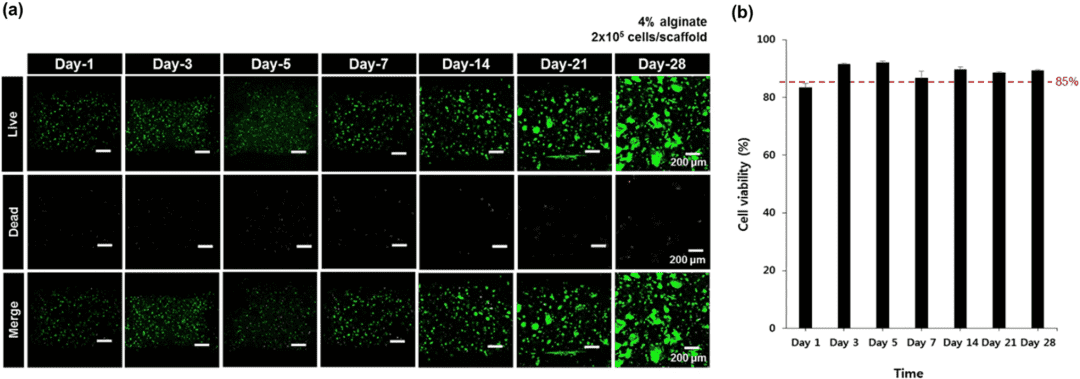 圖4 β細胞在生物3D打印結(jié)構(gòu)中的存活