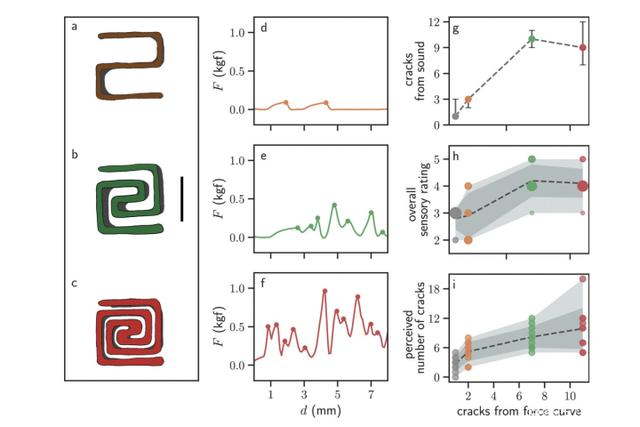 科學(xué)家們以巧克力為模型材料,首先創(chuàng)建和控制了斷裂的各向異性和裂縫的數(shù)量,并證明這些特性能夠在口感體驗中被捕捉到。從而進(jìn)一步利用