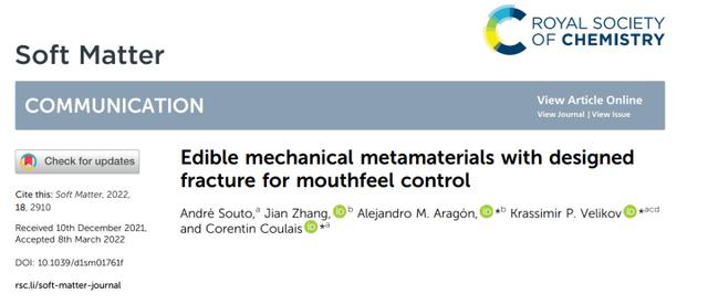 探索“機械超材料”“口感體驗”能夠控制食物的味道、質(zhì)地和整體感官體驗,對于使它們具有吸引力至關(guān)重要。正因為追求“口感體驗佳”,人們在日常生活中往往會主動吃日常,如湯、酸奶和餅干,而不太會更主動地吃更健康或無肉的食物的問題(這就是“口感不佳”)。 控制感覺體驗是設(shè)計食品的一個重要課題,而且使用3D打印是直接制造食品質(zhì)地的一個有前途的途徑,但使用機械超材料來調(diào)節(jié)口感的做法此前還沒有被研究過。