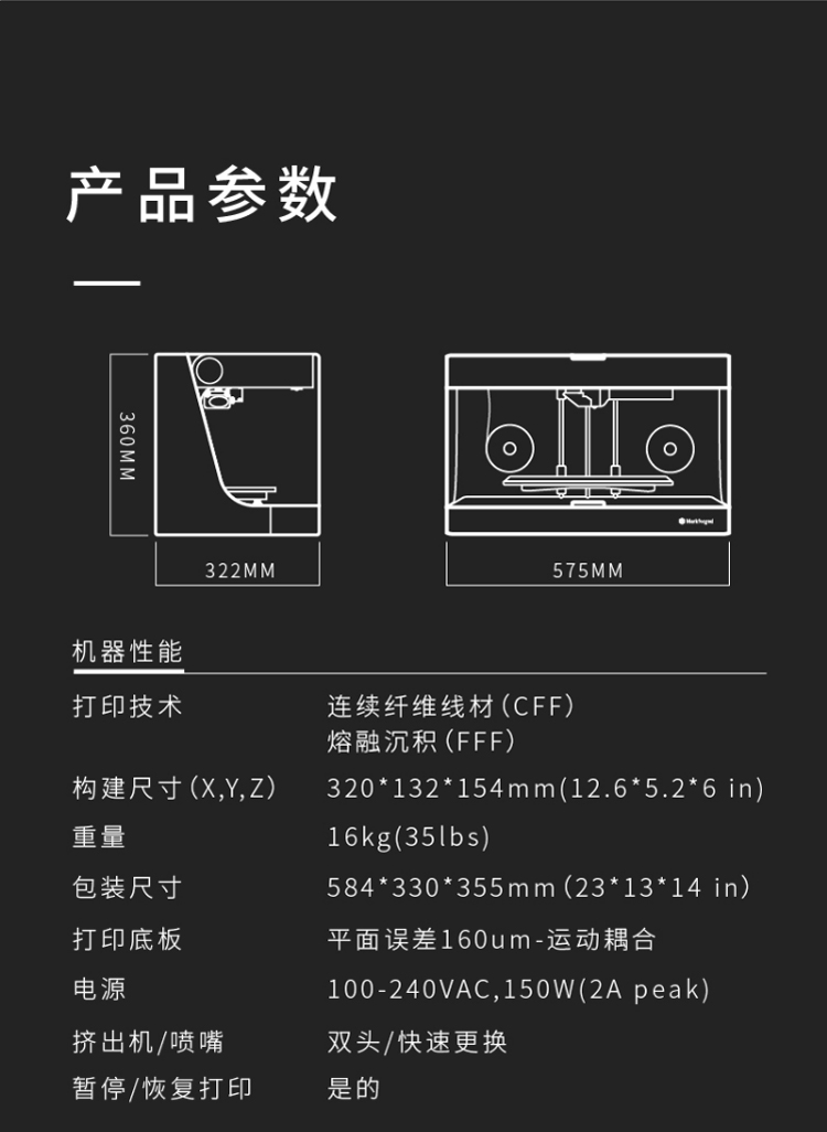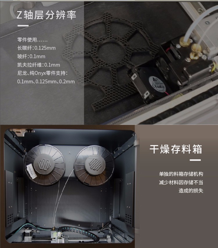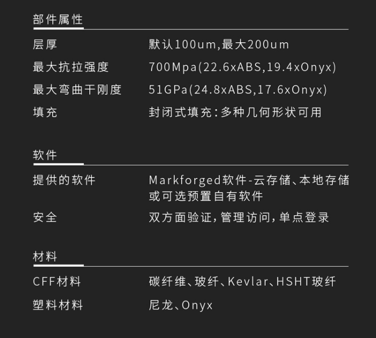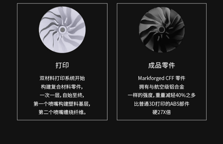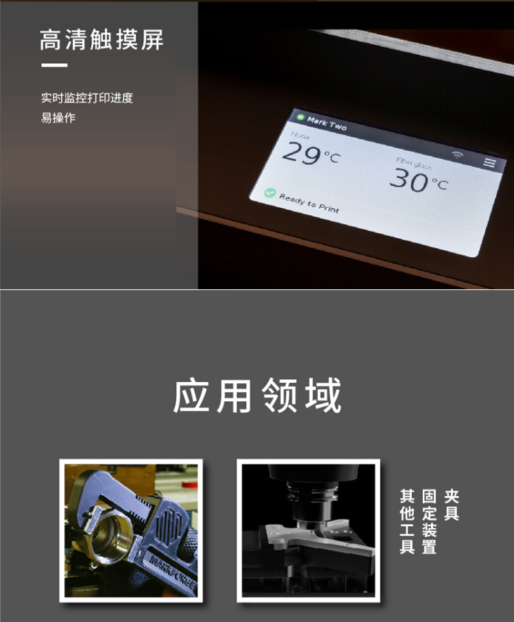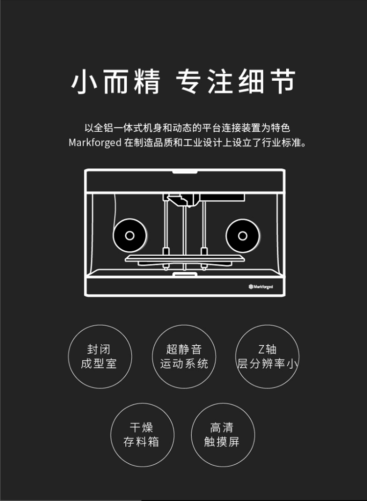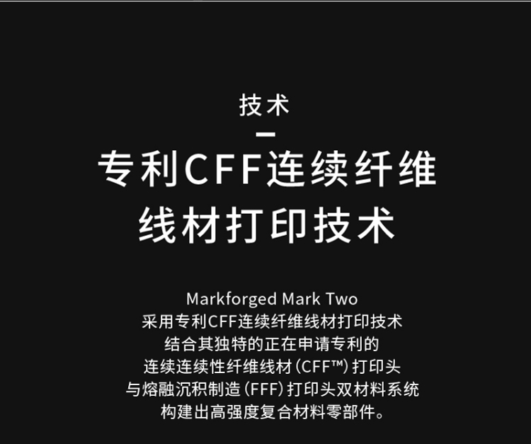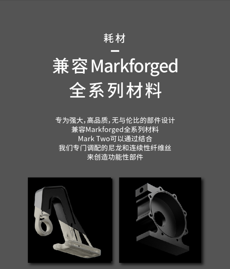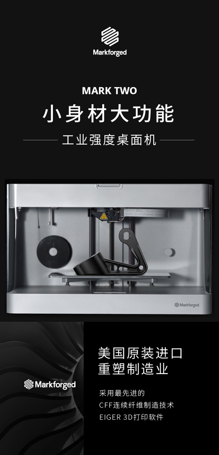 Markforged Mark Two連續(xù)碳纖維3D打印機,由美國3D打印技術(shù)公司Markforged推出。該打印機采用了Markforged自主研發(fā)的獨特技術(shù),可以在同一設(shè)備上打印出強度高、精度高、耐熱、耐腐蝕等性能優(yōu)異的零部件。Markforged Mark Two的打印材料包括了碳纖維、玻璃纖維、金屬、Kevlar等多種材料,可以滿足不同行業(yè)的需求。其支持的最大打印尺寸為320mm x 132mm x 154mm,可以打印出大型零部件,提高生產(chǎn)效率。還配備了自動校準和自動切換打印頭等功能,使得打印過程更加簡單和高效。此外,該打印機還支持云端管理和遠程監(jiān)控,可以隨時隨地掌握打印進度和狀態(tài)。