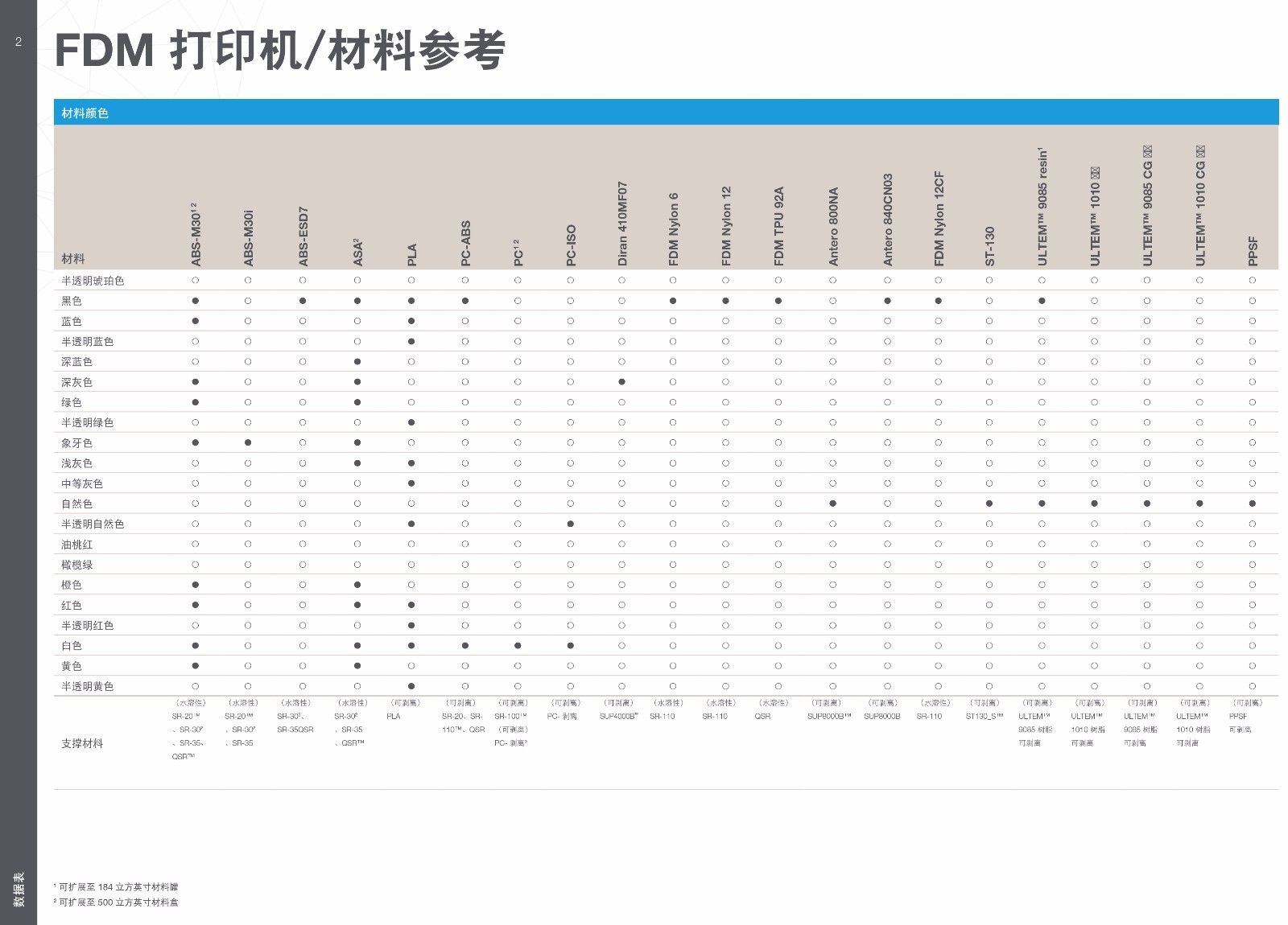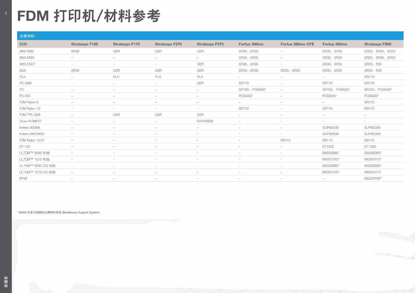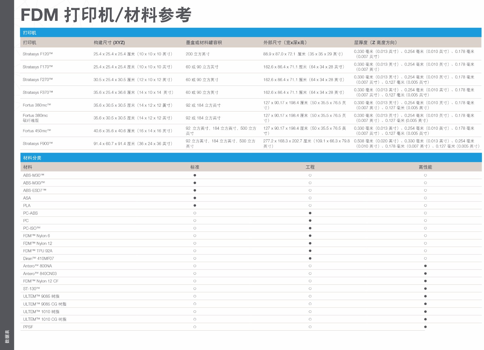 Stratasys FDM3D打印耗材技術(shù)表