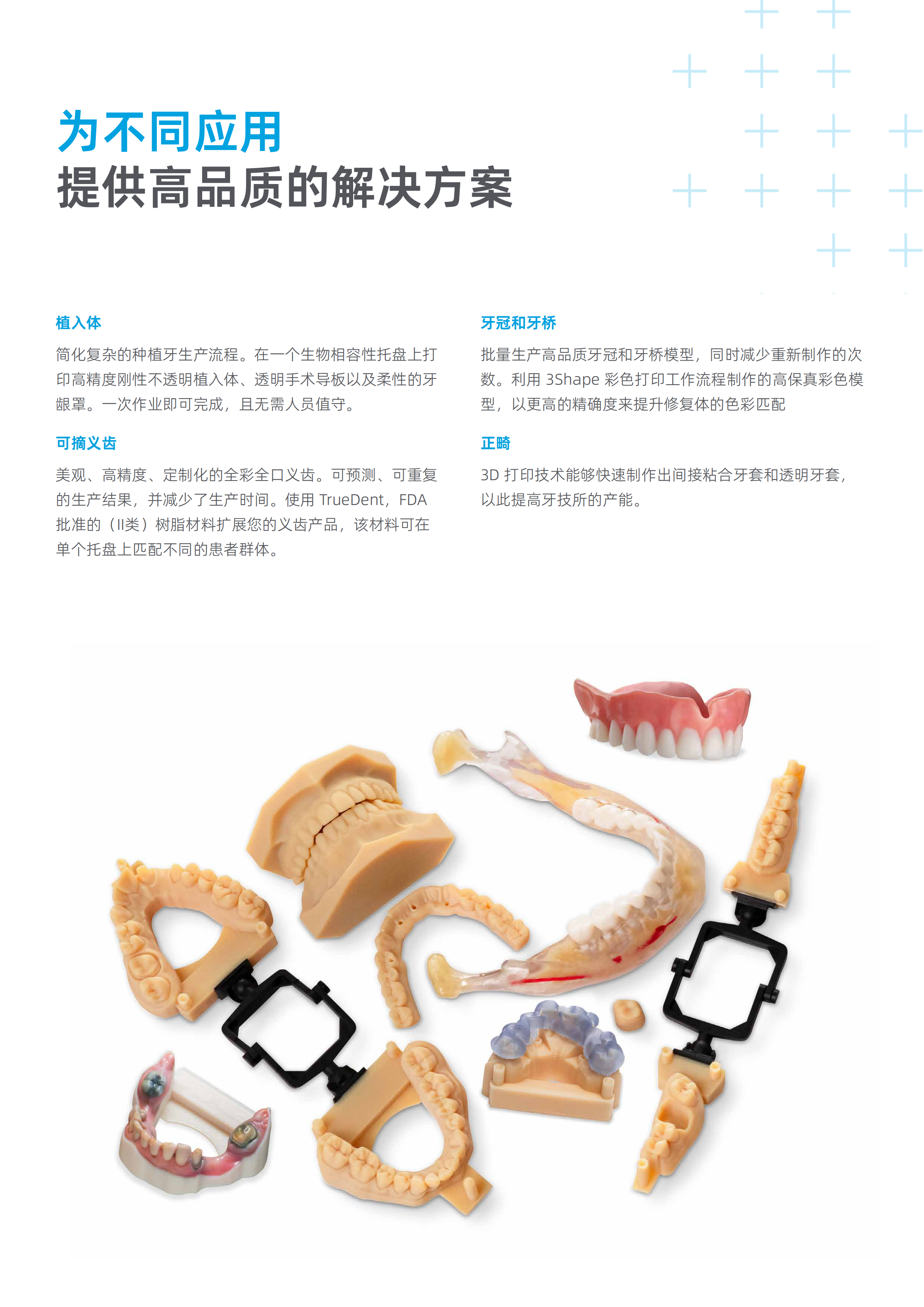 憑借stratasvs 數(shù)字化智能工作流程、無需看守的多材料打印功能,以及非常少量的后處理工作,您可以在提高產(chǎn)量的同時獲得更高品質(zhì)的牙模。Polyet 3D 打印技術(shù)能夠為不同的牙科應(yīng)用帶來關(guān)鍵優(yōu)勢,如: 種植牙所需的超精確度、可摘義齒所需的美觀度、彩色牙模需具備的高保真度,高產(chǎn)量混合托盤打印帶來的靈活度,亦能滿足您的生產(chǎn)需求。