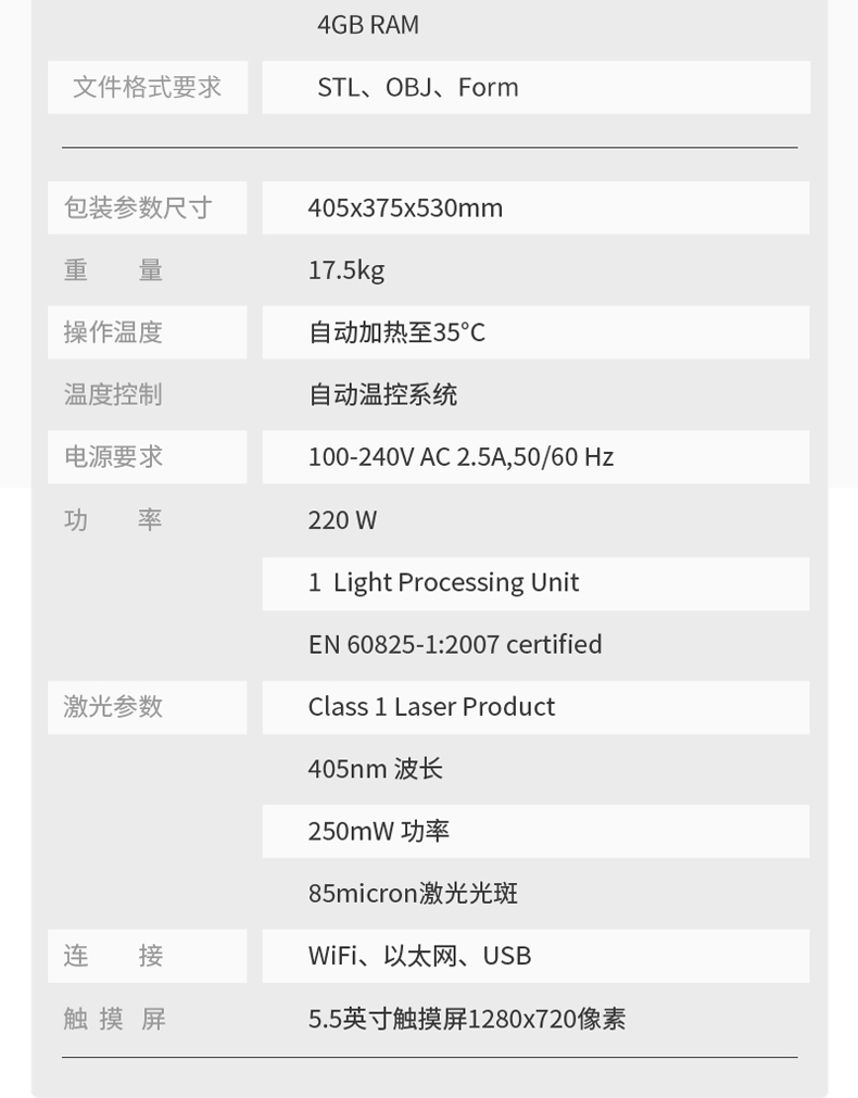 Form 3 將強(qiáng)大的立體光固化 (SLA) 技術(shù)搬到了桌面,僅需工業(yè)級(jí) 3D 打印機(jī)成本的一小部分,就可實(shí)現(xiàn)準(zhǔn)確的高精度打印。Form 3 由高精度光學(xué)引擎驅(qū)動(dòng),其創(chuàng)造的打印件細(xì)節(jié)精美,表面處理效果極佳,比其他塑料 3D 打印技術(shù)的打印件更為光滑和精細(xì)。節(jié)省用于后處理工序的時(shí)間和開(kāi)支,增加用于創(chuàng)造的時(shí)間。