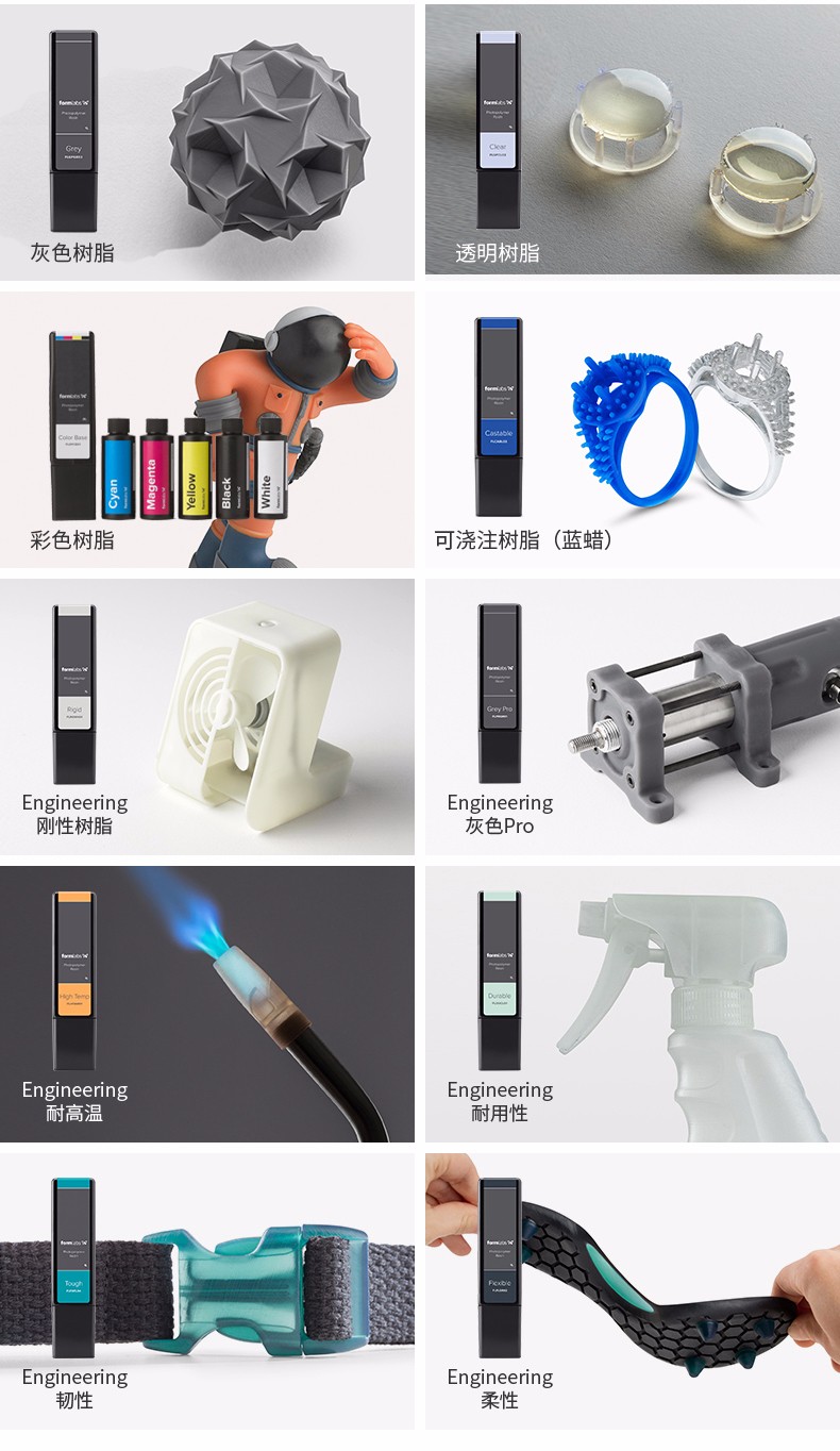 在通用、高級(jí)和專(zhuān)業(yè)材料庫(kù)之間無(wú)縫切換。我們的內(nèi)部材料科學(xué)團(tuán)隊(duì)正致力于研發(fā)新材料,以擴(kuò)大我們的 3D 打印機(jī)的性能。我們的樹(shù)脂專(zhuān)為我們的打印機(jī)而設(shè)計(jì),可提供具有光滑表面光潔度的功能性部件,其外觀、觸感、和工作效果都與最終產(chǎn)品如出一轍。